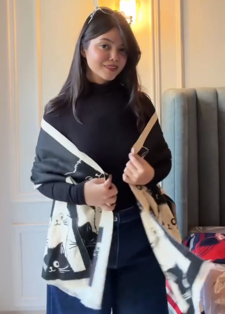 This shawl is generously sized, allowing it to be worn in multiple ways—draped over the shoulders, wrapped like a stole, styled as a poncho, or even used as a light blanket during travel or lounging. Its lightweight yet insulating material provides warmth without feeling heavy, making it perfect for winter, autumn evenings, or air-conditioned spaces. ❄️✨