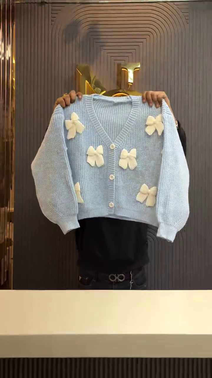 Fall in love with cozy elegance 💕 Our Bow Bliss Cropped Knit Cardigan is designed to turn everyday outfits into effortlessly chic looks. Crafted for comfort and charm, this cardigan features adorable 3D bow appliqués that add a playful yet sophisticated touch to a timeless knit silhouette. Perfect for layering or wearing on its own, it’s a must-have piece for every fashion lover 🌸