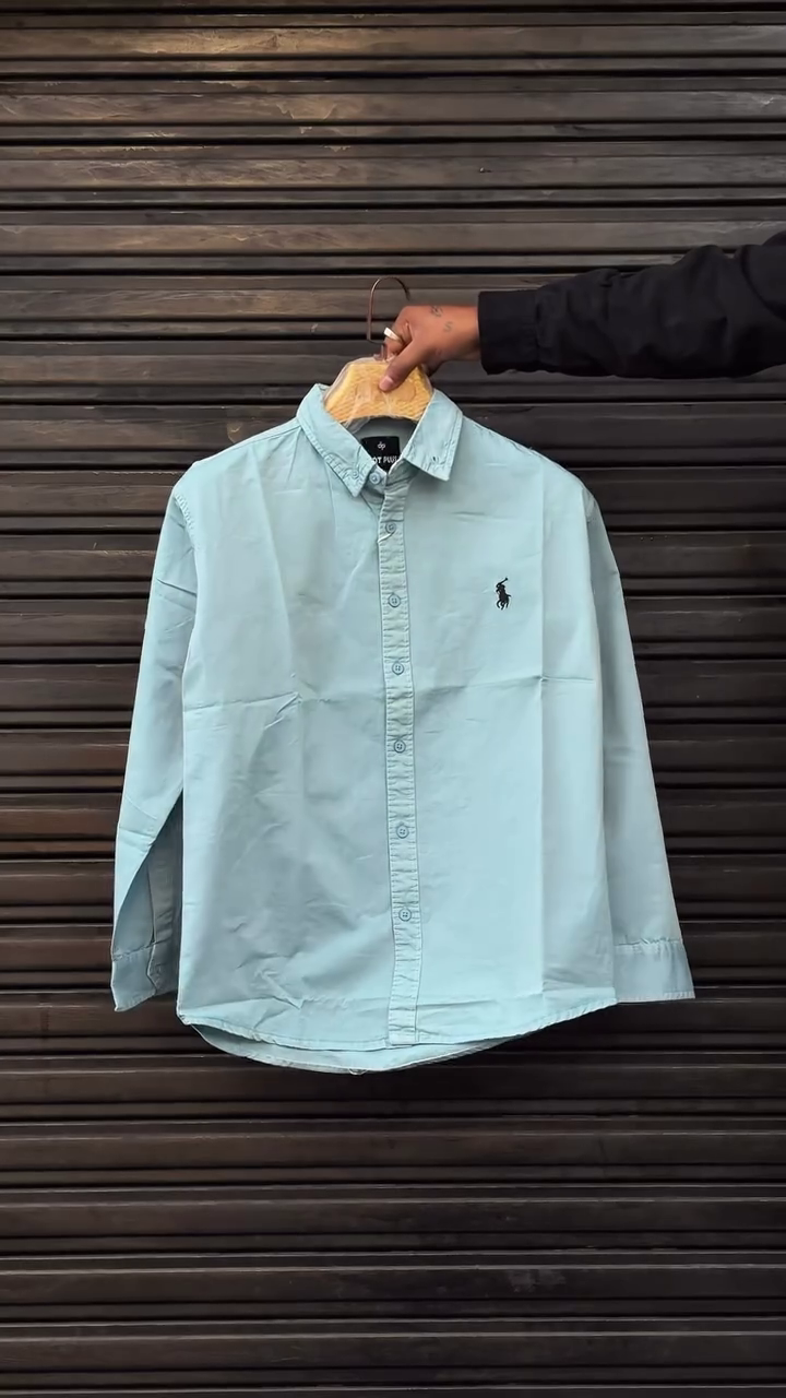 The refreshing mint green shade adds a subtle pop of color without being overpowering, making it easy to style with jeans, chinos, cargos, or trousers. Finished with a classic button-down front, neatly tailored collar, and a minimal embroidered logo on the chest, this shirt delivers understated luxury with a modern edge 👌.