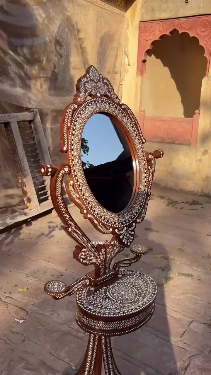 A perfect blend of art, tradition, and utility, this handcrafted standing mirror is not just a décor item—it’s a piece of heritage that elevates your space with warmth, history, and elegance. ✨🤍