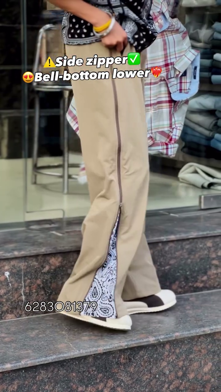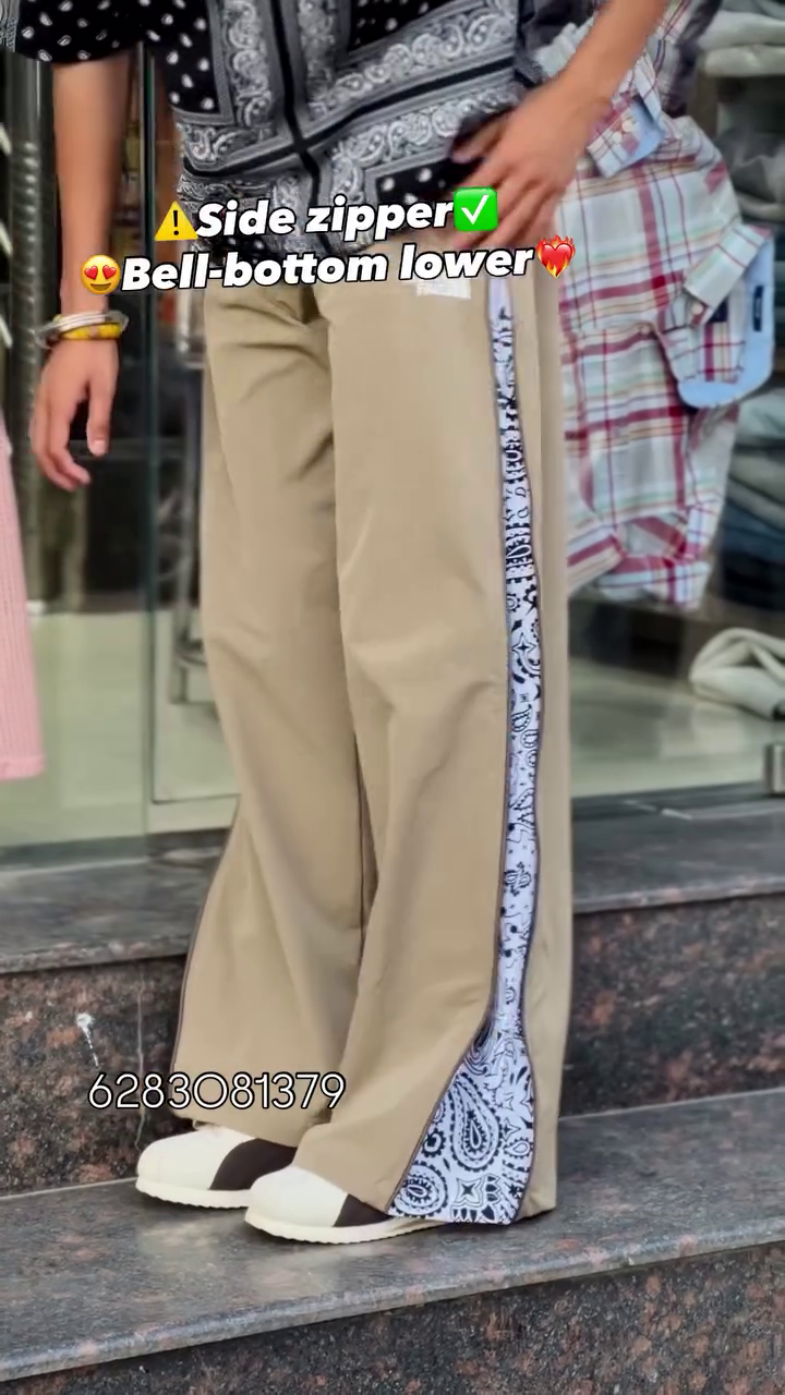 The standout feature is the functional side zipper detail, which adds a bold, edgy touch while also enhancing versatility. ⚡ The zipper opens to reveal a contrast printed inner panel, giving you the freedom to switch between a sleek straight look and a dramatic flared bell-bottom style. Whether zipped up for a clean silhouette or partially opened for a statement vibe, these pants adapt effortlessly to your mood and styling. 😍🔥