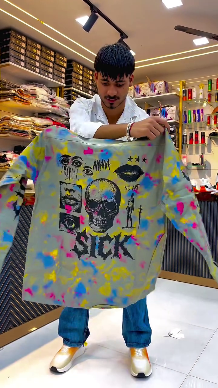 Available in multiple color variants, you can pick the splash pattern that suits your personality the most—cool tones, fiery tones, balanced tones, or dramatic artistic tones. The fit runs perfectly oversized, allowing full comfort, airflow, and effortless movement throughout the day.