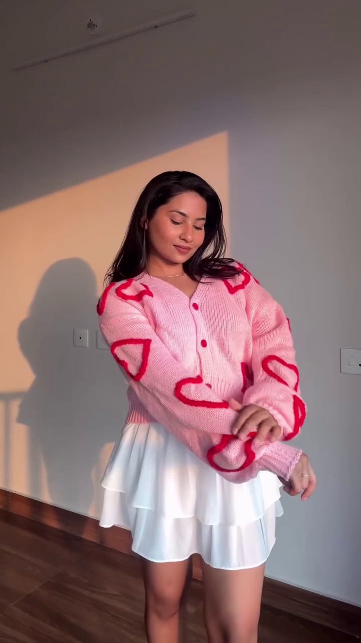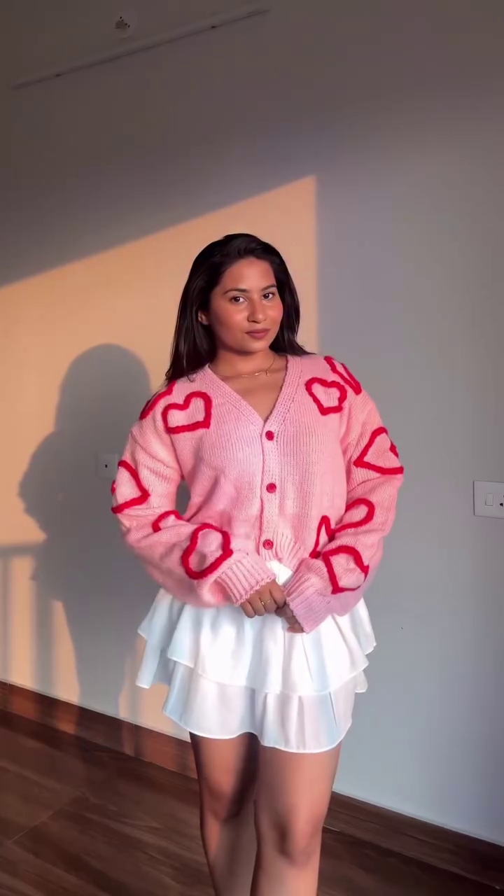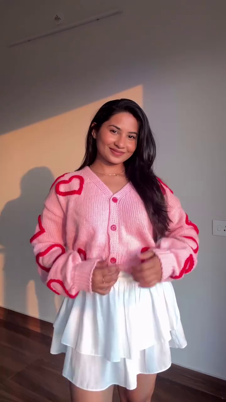 The big red hearts add a charming pop, making it the ultimate cardigan for brunch dates, winter strolls, cozy evenings, and cute Instagram moments 📸💕