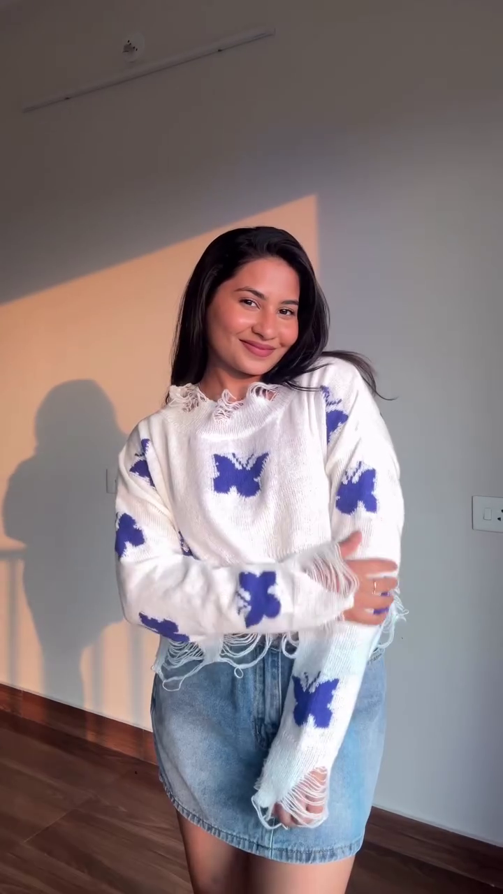 A perfect mix of soft coziness and trendy street flair, this sweater features blue butterfly motifs that add a dreamy vibe to your look 🦋💙.