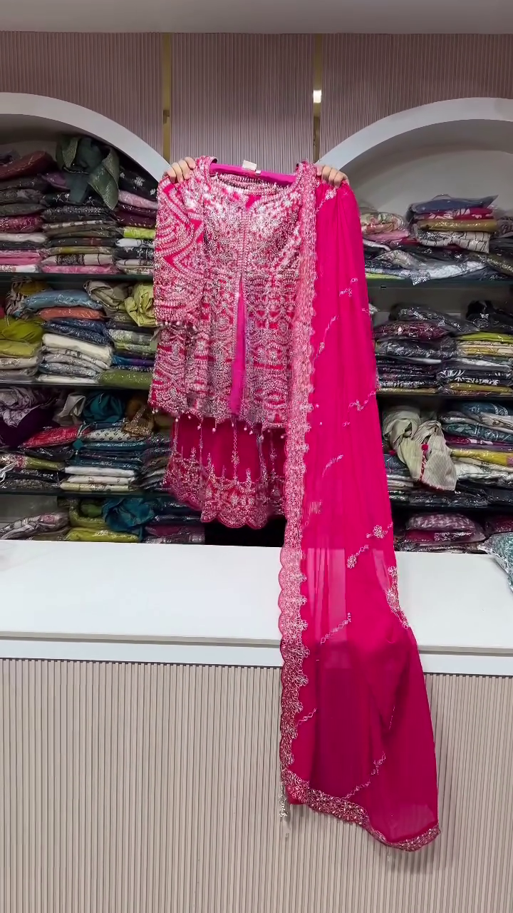 Add instant glamour to your ethnic wardrobe with our Rani Pink Crystal Glow Embroidered Suit Set, designed for women who love bold colors, rich embroidery, and statement looks โจ๐. This stunning outfit is perfect for weddings, receptions, festive celebrations, sangeet nights, and special occasions where you want to shine bright.