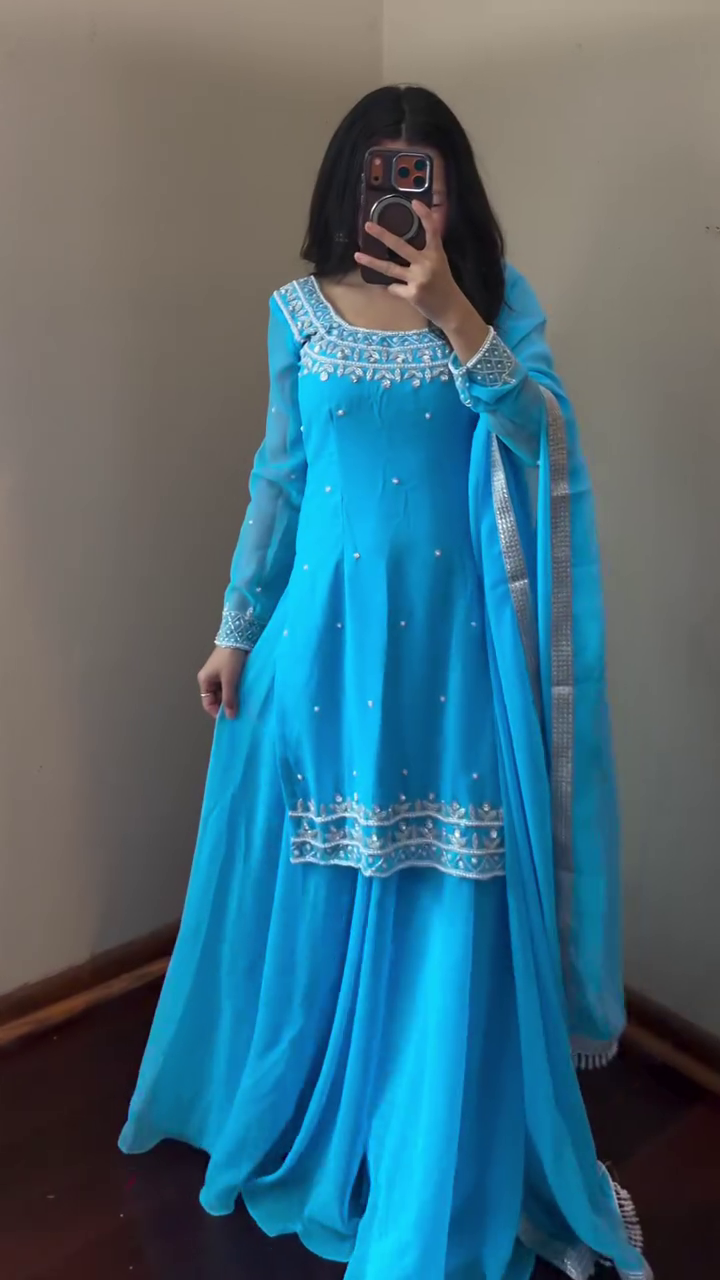 Paired with a soft, flowy matching dupatta, this set completes the look effortlessly. The dupatta adds an extra layer of grace, making it perfect for traditional styling or modern draping styles. Whether worn over the shoulder or styled elegantly around the arms, it enhances the overall outfit beautifully π«.