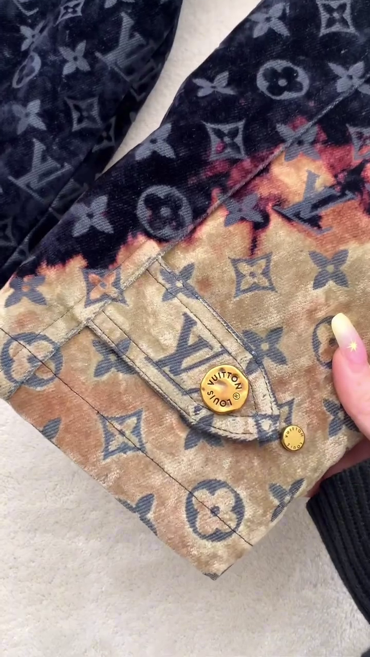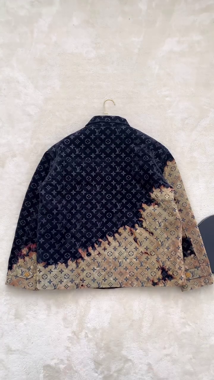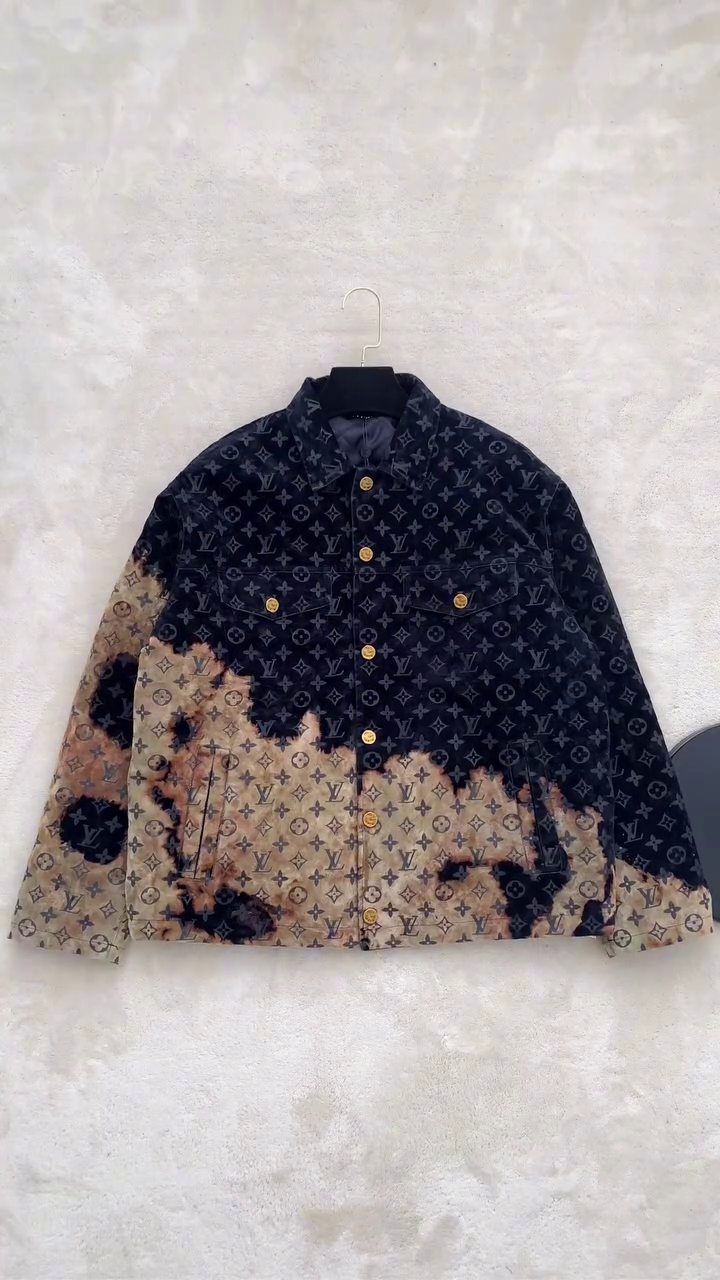 Crafted from high-quality denim fabric, this jacket features an eye-catching all-over monogram pattern combined with a unique vintage bleach-wash effect. The contrast of deep black tones with earthy brown fades gives it a rugged yet refined look, ensuring no two jackets look exactly the same. This makes every piece feel exclusive and statement-worthy π₯.
