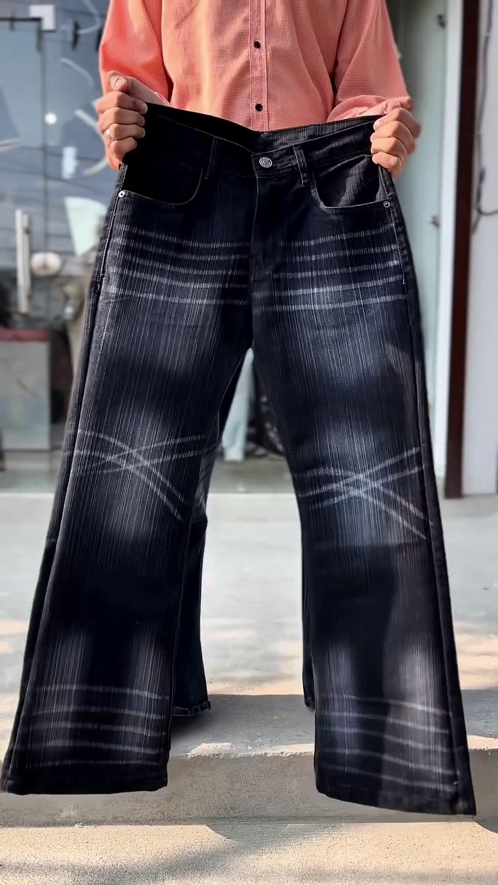 Crafted from high-quality denim fabric, these jeans feature a unique washed texture with subtle vertical streak detailing, giving them a trendy, worn-in look that stands out instantly. The fabric feels sturdy yet comfortable, making it perfect for all-day wear without compromising on style. π―