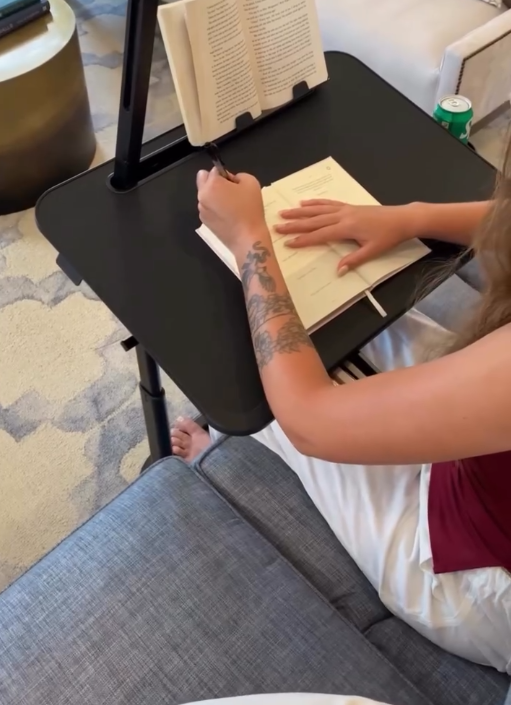 The integrated book holder/stand keeps your book or tablet upright, making it ideal for reading, studying, or following recipes hands-free. This makes the desk especially useful for students, professionals, writers, and book lovers who enjoy multitasking or maintaining focus. 📘📱