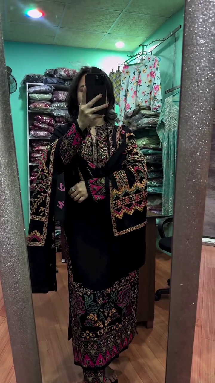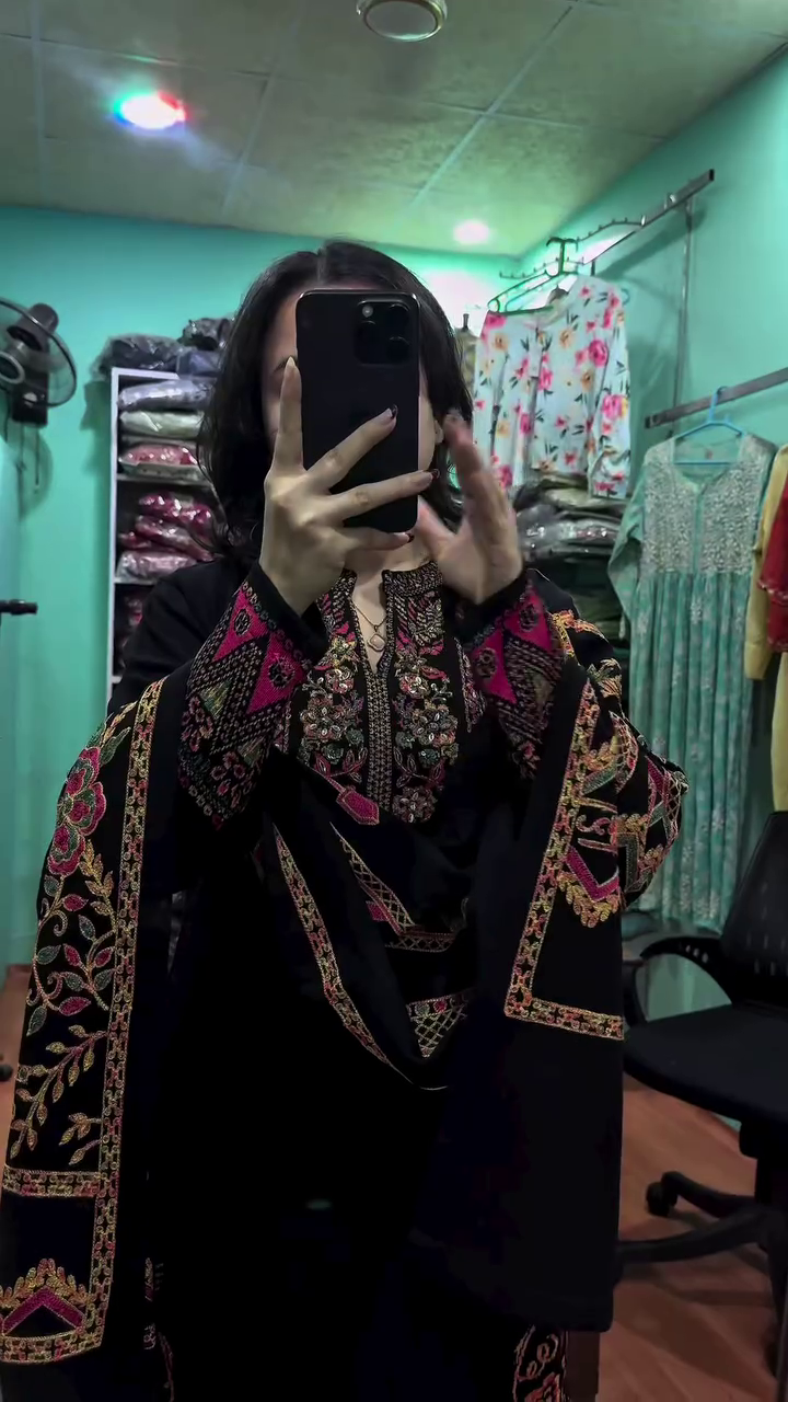 & Free ShippingStep into timeless elegance with our Royal Kashmiri Heritage Suit Set, a masterpiece designed for women who adore classic craftsmanship blended with luxurious style β¨. This ensemble celebrates traditional artistry with its rich, intricate embroidery spread beautifully across the kurta, sleeves, and matching dupatta. The bold black base enhances every thread of color, giving the outfit a regal charm that instantly elevates your look ππΊ.