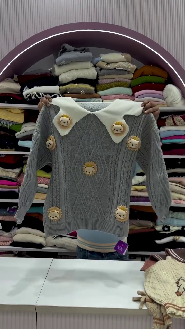 The standout feature of this sweater is its adorable lion patch detailing 🦁🀍. Cute embroidered lion faces are carefully placed across the front, adding a playful and youthful vibe that instantly makes this sweater unique. The contrasting collared neckline design enhances its charm, giving it a smart-casual look that effortlessly balances cute and classy. The textured cable-knit pattern further elevates the overall design, adding depth and a premium feel.