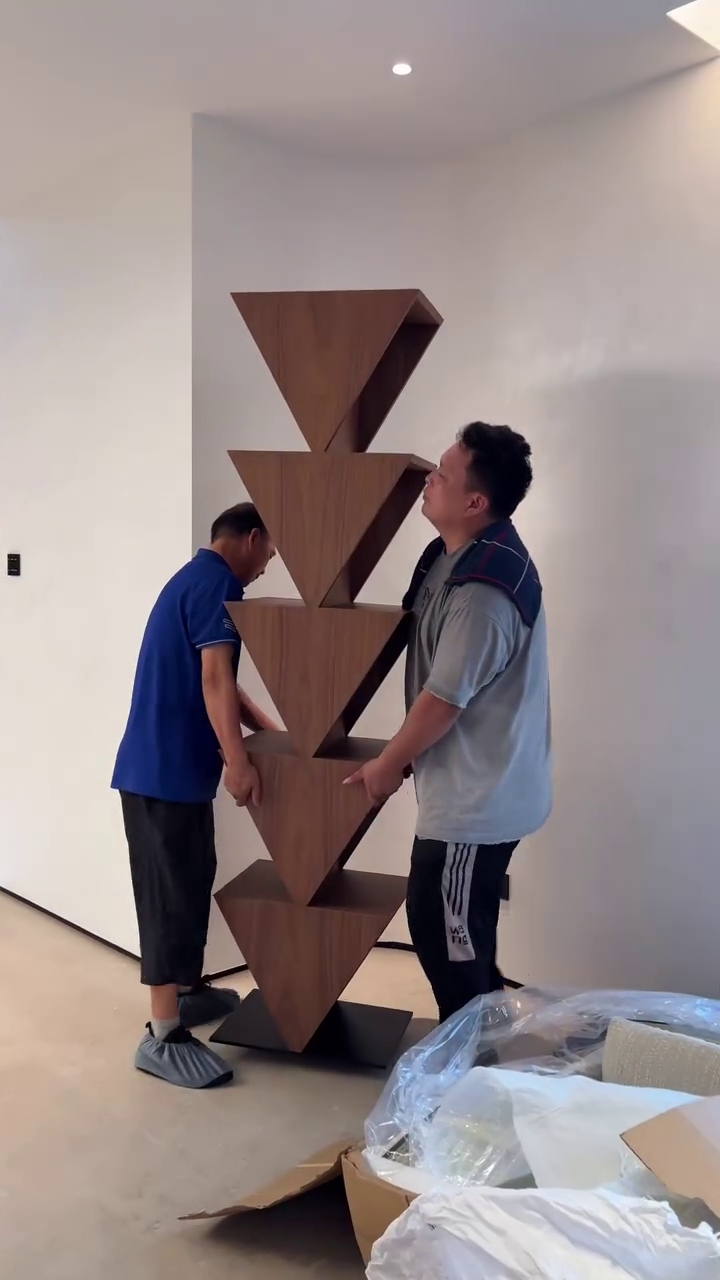 Designed with a geometric stacked form, this piece features precision-cut triangular sections arranged in a striking vertical balance. The sculptural silhouette instantly draws attention, making it a perfect centerpiece for living rooms, offices, showrooms, luxury homes, studios, or designer spaces. It’s not just furniture—it’s a conversation starter. 🔺✨