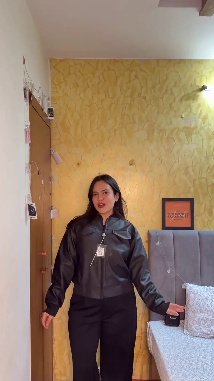 The black PU leather jacket featured above blends strong structure with clean tailoring, making it a go-to for anyone who loves a bold yet classy winter vibe. The front zip closure, statement pockets, and smooth finish put together a look that feels high-street yet super wearable.