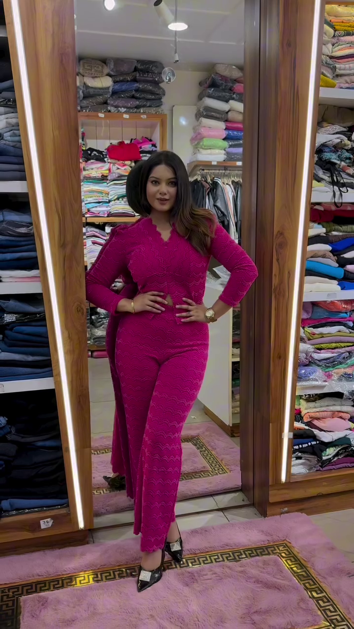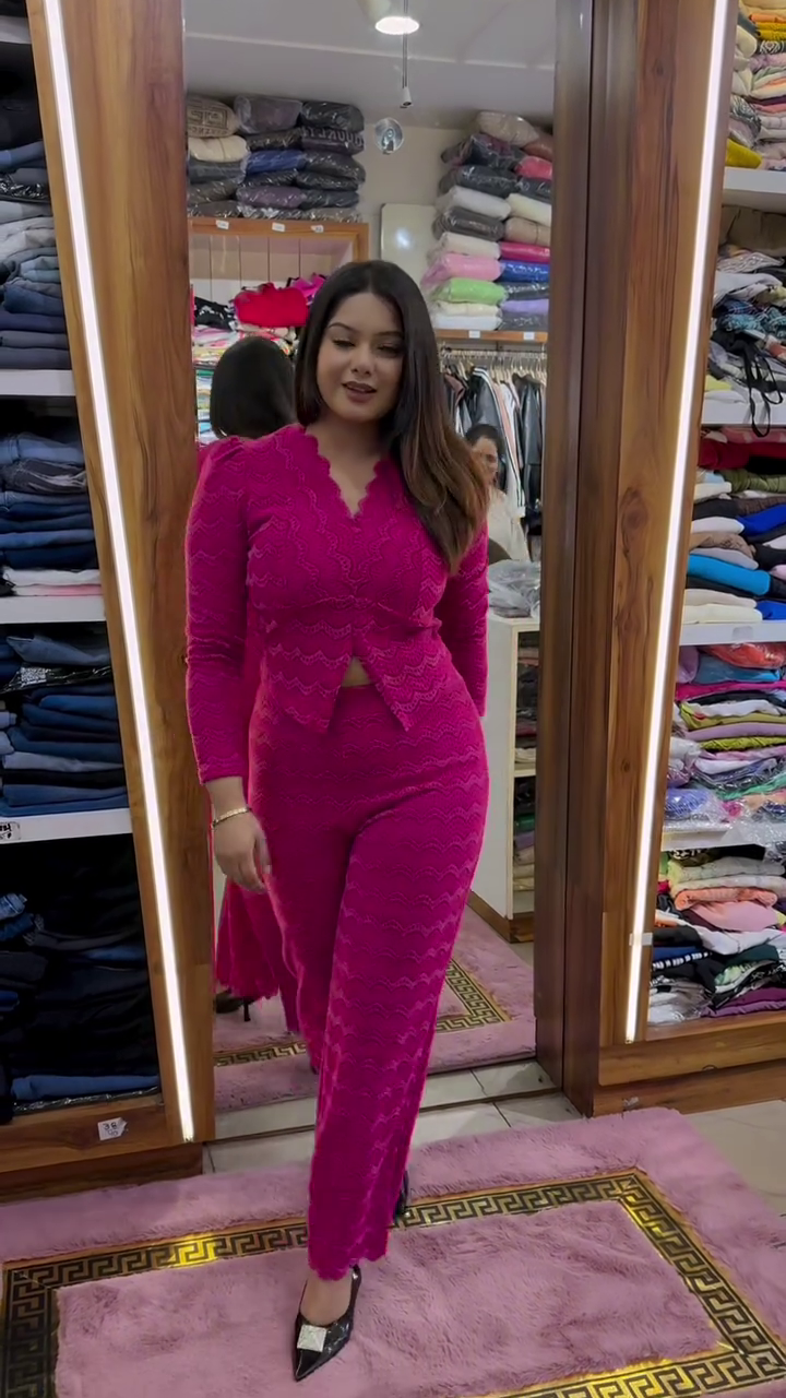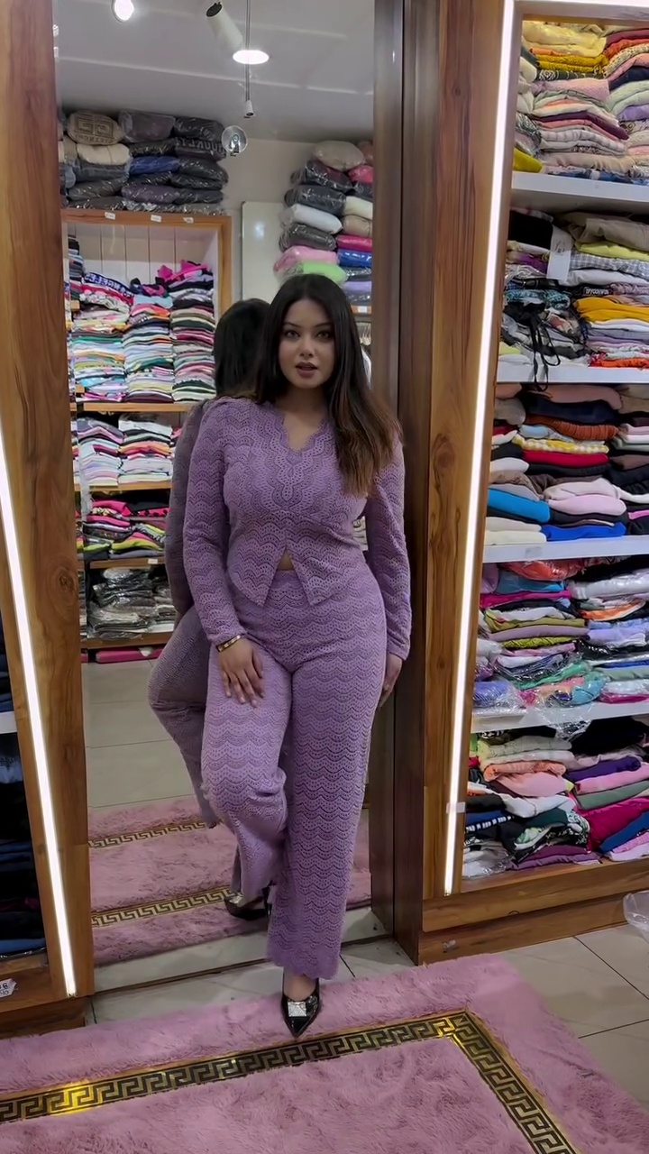 Upgrade your winter wardrobe with this Women’s Premium Stretch Lace-Knit Winter Co-ord Set, designed to give you the perfect blend of warmth, elegance, comfort, and luxury styling. Whether you choose the gorgeous brown, stunning pink, or soft lavender, every shade brings out a fresh, feminine and confident vibe. This set includes a beautifully fitted lace-knit top paired with matching wide-leg pants, crafted to enhance your natural curves while keeping you cozy throughout the season ❄✨.